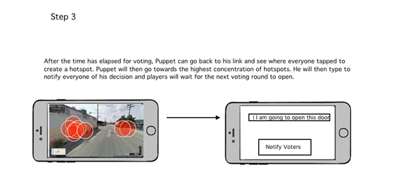 This project is in its initial phases of Alpha testing. To the right are screen captures from early playtests. Below those are wireframes, which offer some more insight into the interaction between player and protagonist.